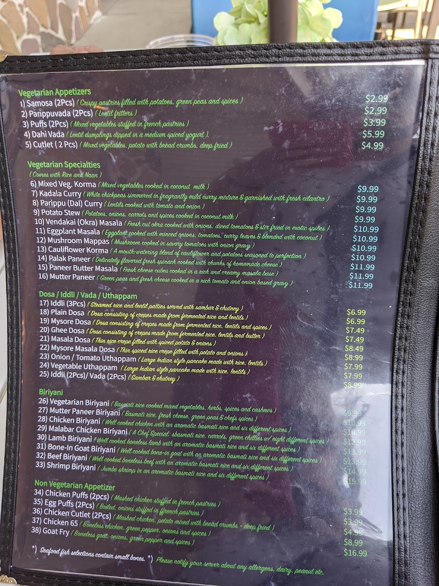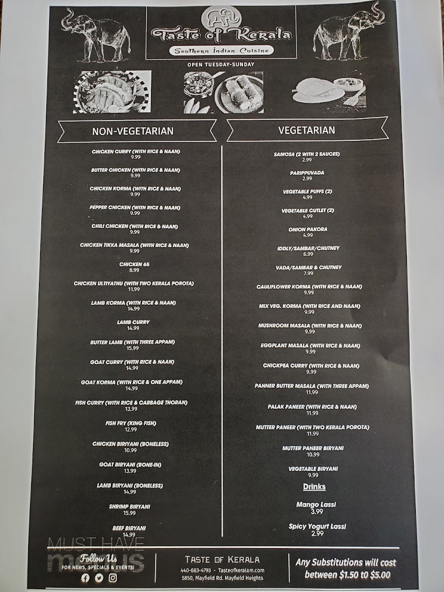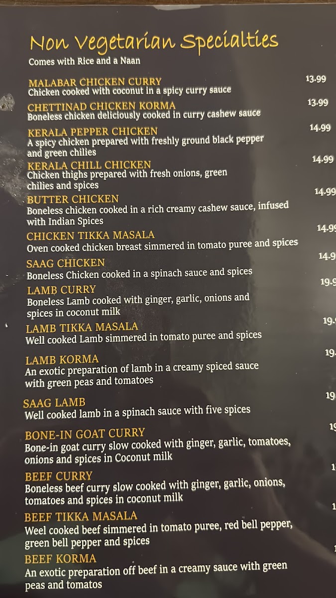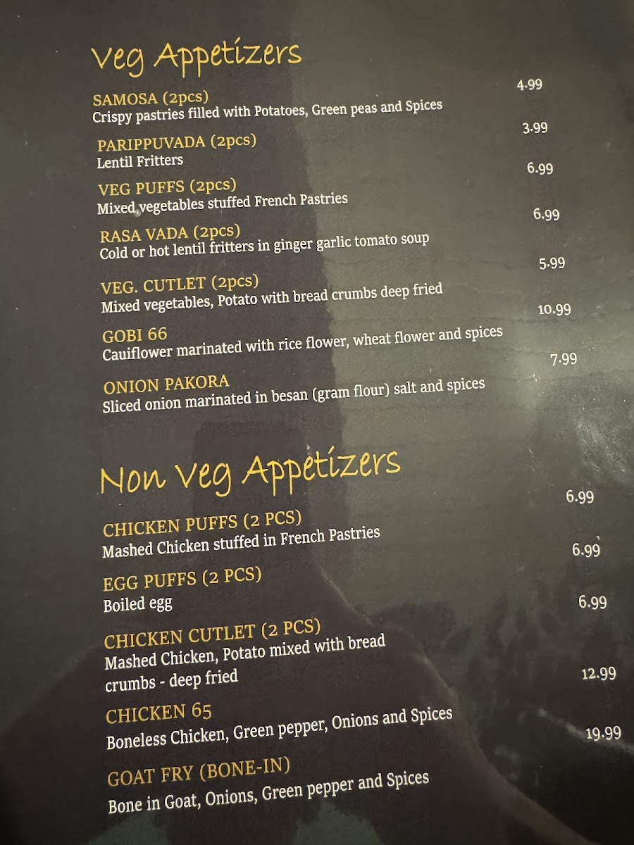 Taste of Kerala - An authentic Kerala Restaurant Menu