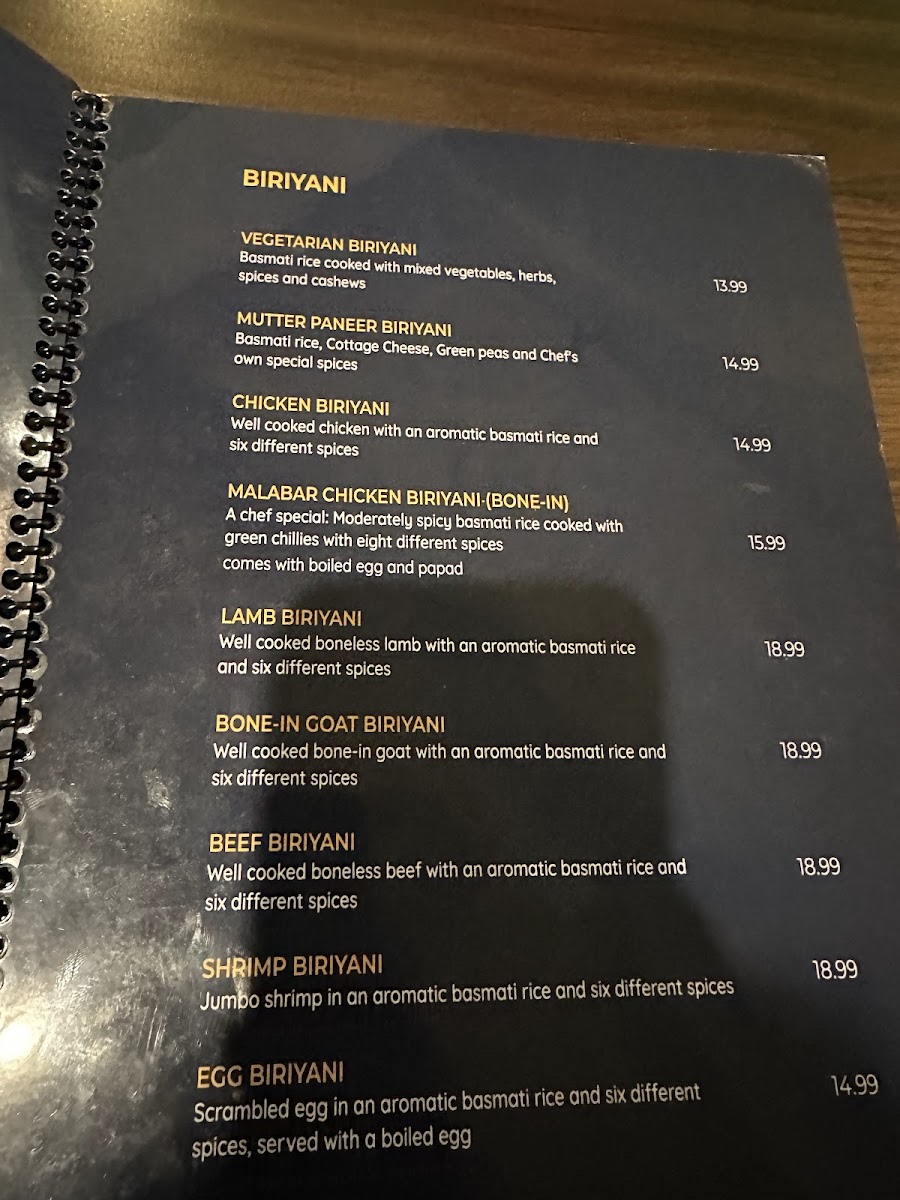 Menu - Biriyani